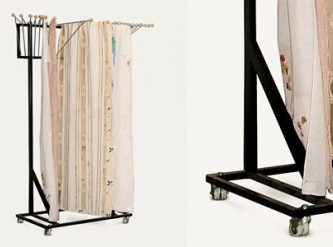 Le système de bras en V est conçu pour présenter tous types de tissus et toutes tailles : des petits coupons aux échantillons de rideaux froncés ou de panneaux japonais. Chaque bras permet de disposer deux échantillons, un de chaque côté, pour une consultation aisée du catalogue.
