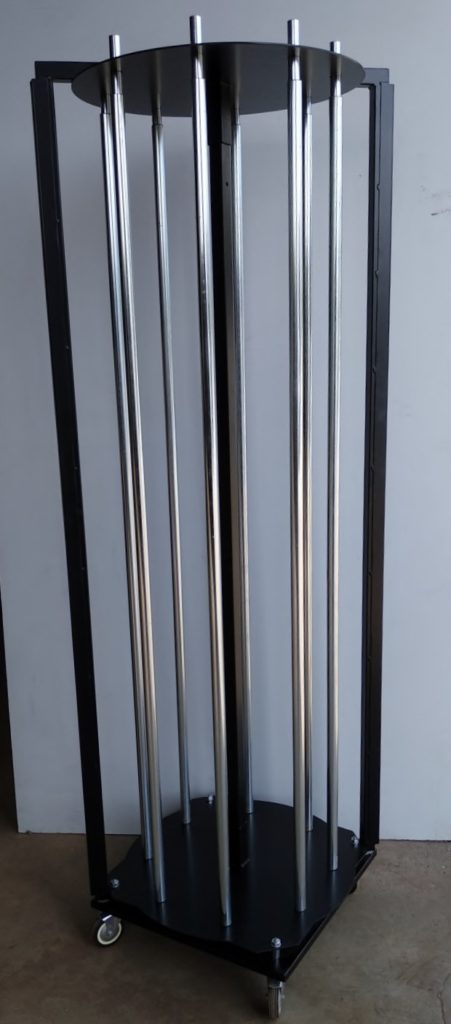 Ce présentoir vertical a été conçu pour présenter jusqu’à huit rouleaux de toile cirée jusqu’à 160 cm de large, occupant ainsi un minimum d’espace. Son format compact le rend idéal pour les magasins disposant d’un espace limité, sans compromettre la visibilité ni l’accès aux produits.