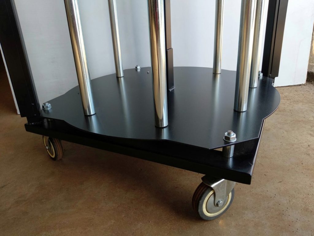 Il est équipé de guides latéraux permettant le déplacement du cutter (inclus avec l’écran), facilitant ainsi la mesure directe depuis le support. Sa structure amovible et robuste est recouverte d’une peinture époxy cuite, alliant durabilité et fonctionnalité.